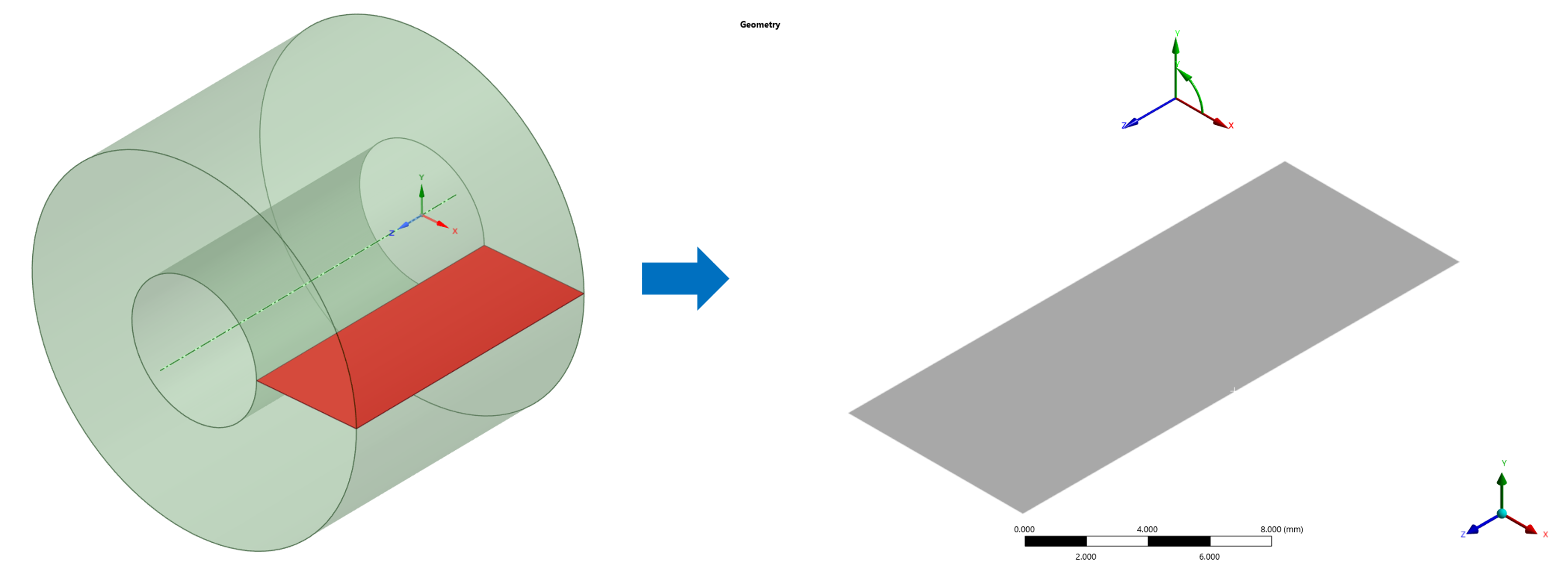 요약하면, General Axisymmetric은 2D 축대칭 모델의 효율성과 3D 모델의 정확성을 동시에 확보할 수 있는 요소 기술로서 기존 축대칭 해석의 한계를 크게 확장해준다.