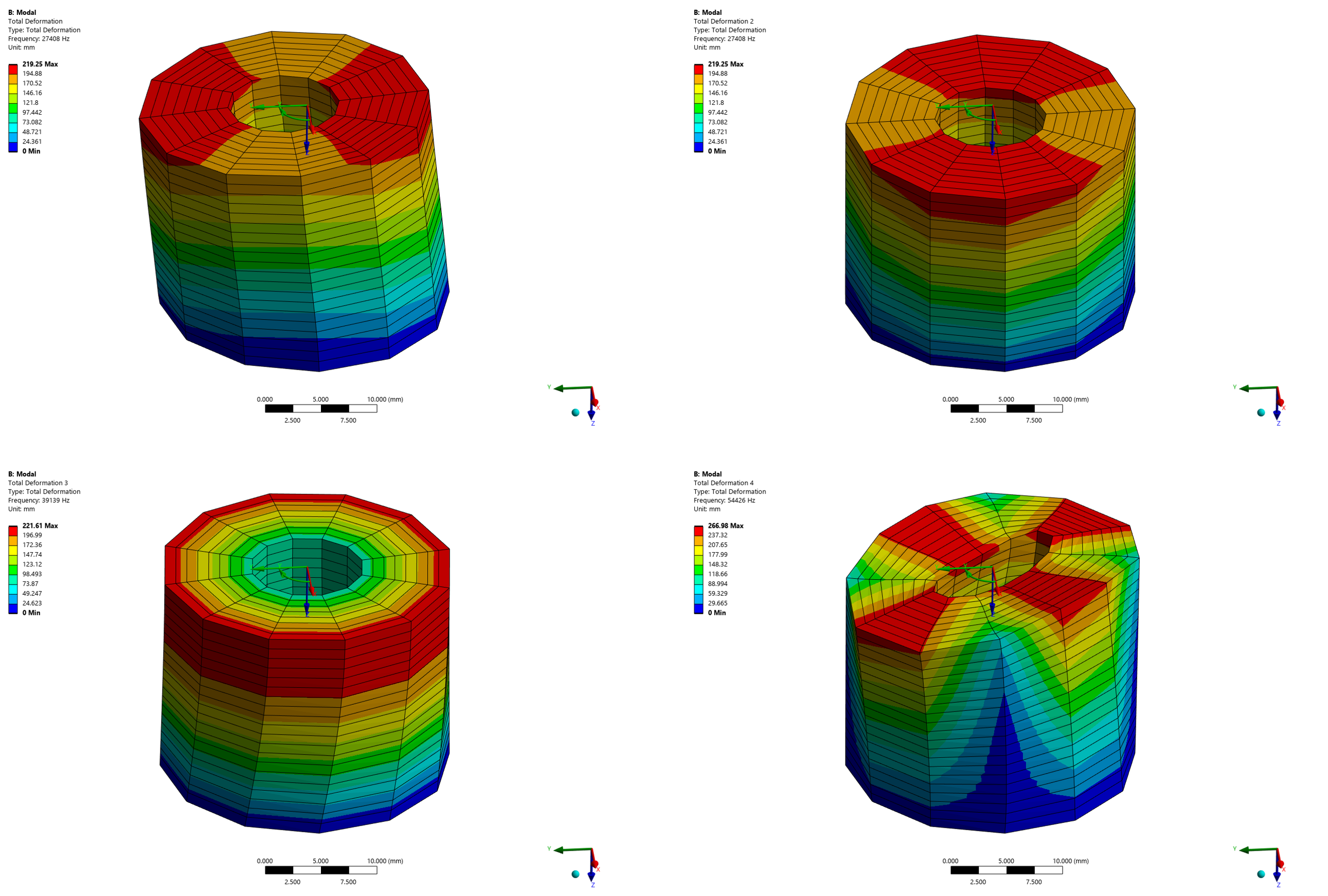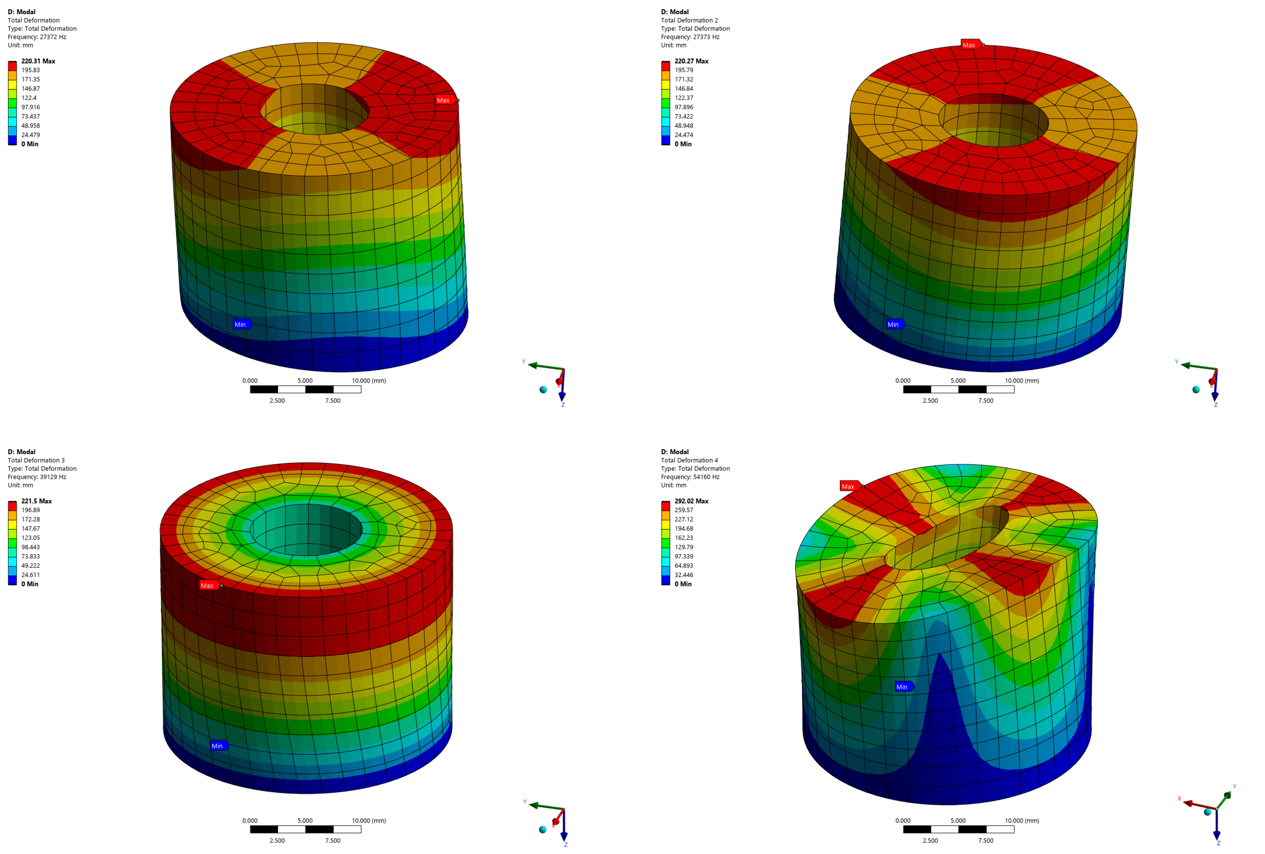 [그림 8] General Axisymmetric을 적용한 모드 해석 결과 (1~4차 모드)