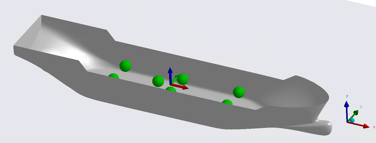 Ansys Aqwa를 이용한 선박의 운동 해석을 위해 중량, 무게 중심과 관성 모멘트가 필요하며, [표1]의 중량 정보를 선박 모델에 적용하였다.