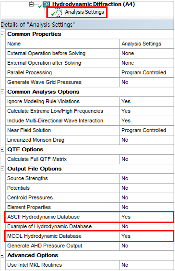 [그림 6] Hydrodynamic Diffraction의 Analysis Settings (2025R2 기준)