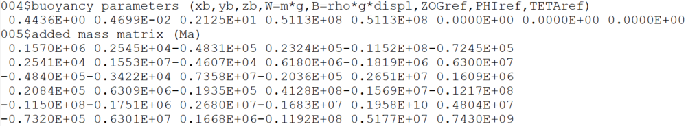 [그림 15] Added Mass Matrix 및 Buoyancy Parameters