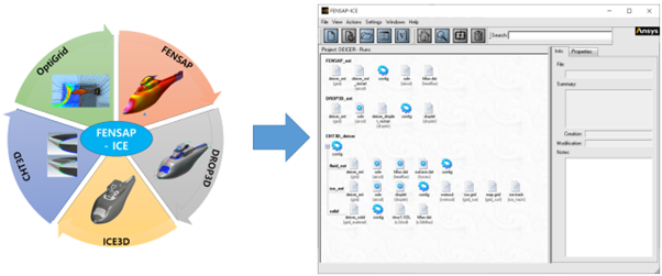 FENSAP-ICE™는 유동해석(CFD Solution), 물방울 충돌(Water Droplet Solution), 결빙 성장(Ice Solution), 방빙/제빙 관련 열해석(CHT Solution)을 수행할 수 있는 모듈 형태로 구성된 결빙 해석 전용 소프트웨어다.