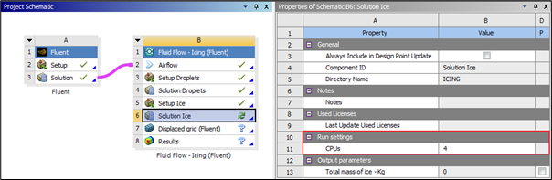 Solution Ice Properties에서는 병렬연산을 위한 CPUs 수를 설정하며[그림 9], Update 후에 Output parameter에서 Total mass를 확인한다. [그림 10]