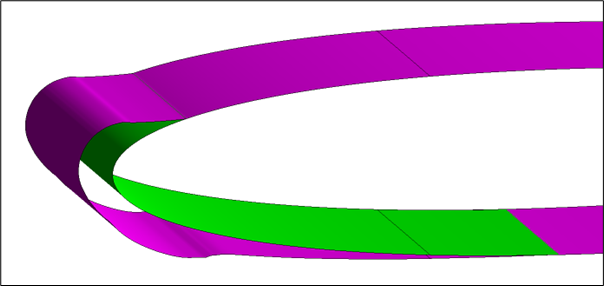 [그림 17] CFD-Post - 초기 형상(결빙 전, 초록색) / 변화된 형상(결빙 후, 자주색) 비교