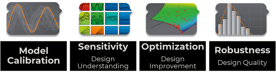 OptiSLang은 Design Optimization을 위한 파라미터 설계 탐색 및 분석을 위해 다양한 분석 기법과 알고리즘을 제공합니다.