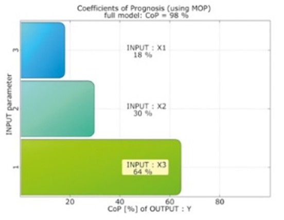 [그림 4] Sensitivity analysis 결과, (위) response surface, (아래) coefficient of Prognosis