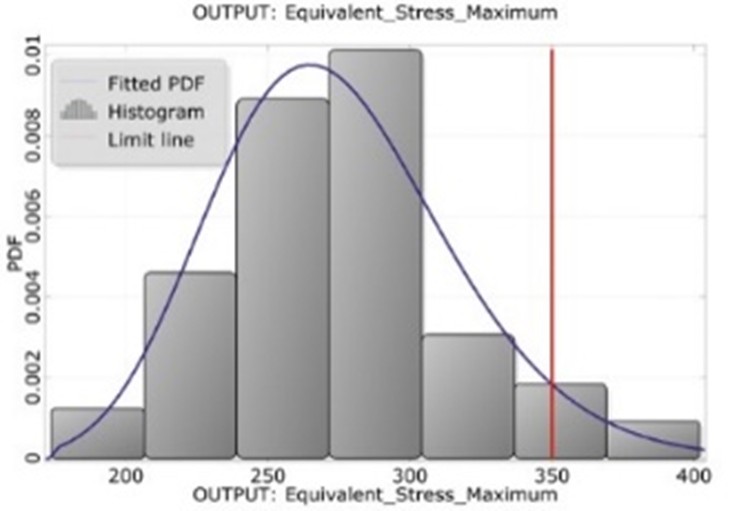 [그림 5]는 입력 변수에 따른 출력 응답의 안정성을 확인하는 확률 분포 그래프입니다. 설계가 강건할수록 응답 분포의 폭이 좁게 나타납니다. 만약 설계가 강건하지 않다면, 제약 조건을 강화하여 재계산을 수행함으로써 사용자가 강건 최적 설계를 확보할 수 있도록 합니다.