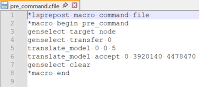 [그림 4] cfile에 기록된 LS-Prepost 명령어