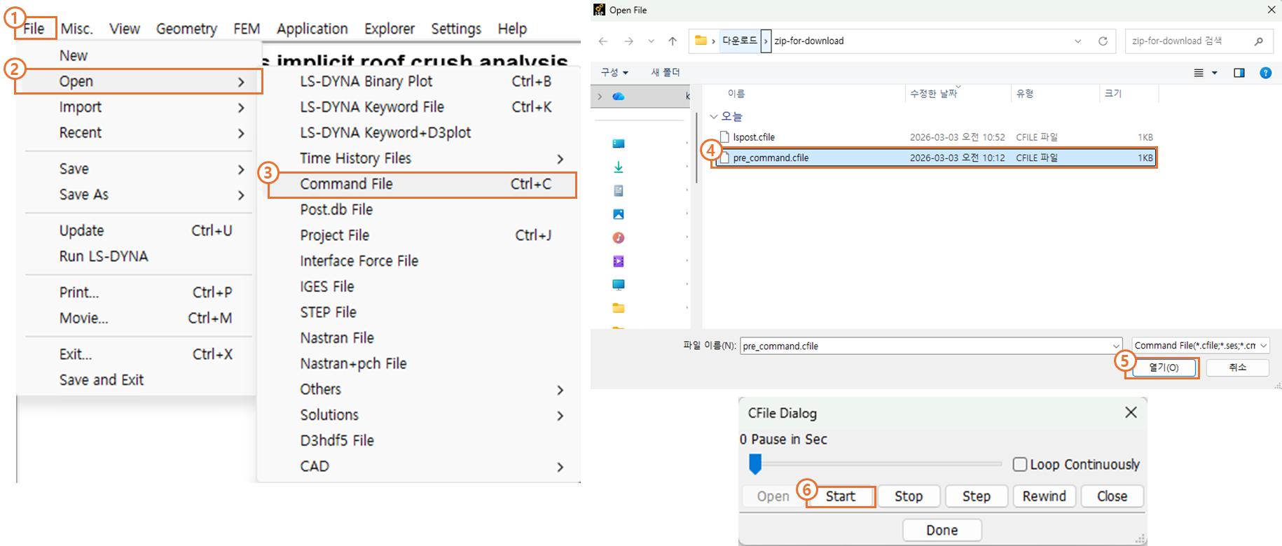 2. LS-Prepost UI 상에서 cfile을 실행하는 방법