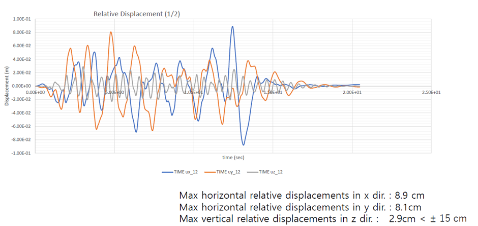 [그림 4] Relative Displacements in 3D Isolation system subjected to DBE=0.3g