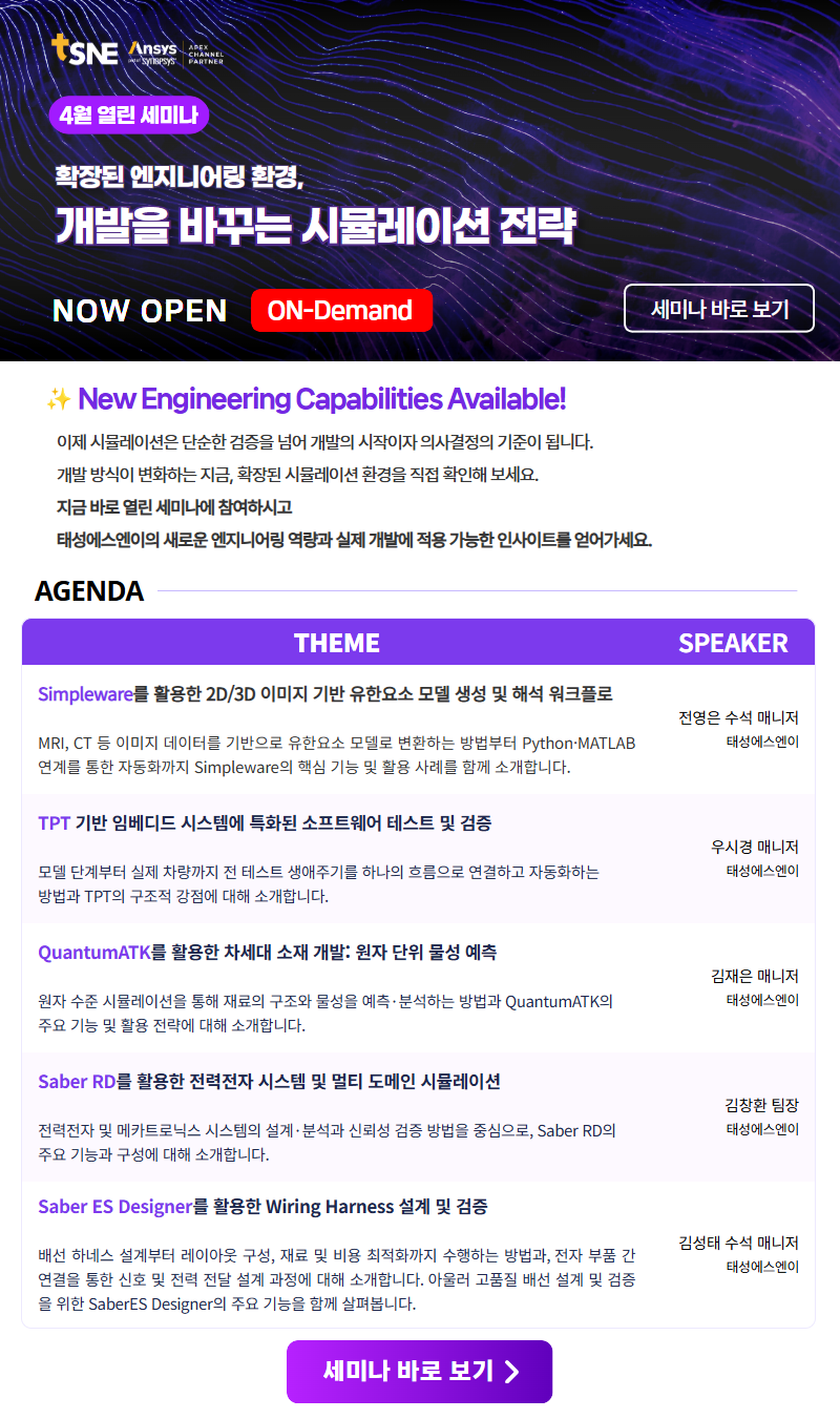 | Saber RD : 전력전자 시스템 및 멀티도메인 회로 모델링 시뮬레이션 소개 | 김창환 팀장 태성에스엔이 | |